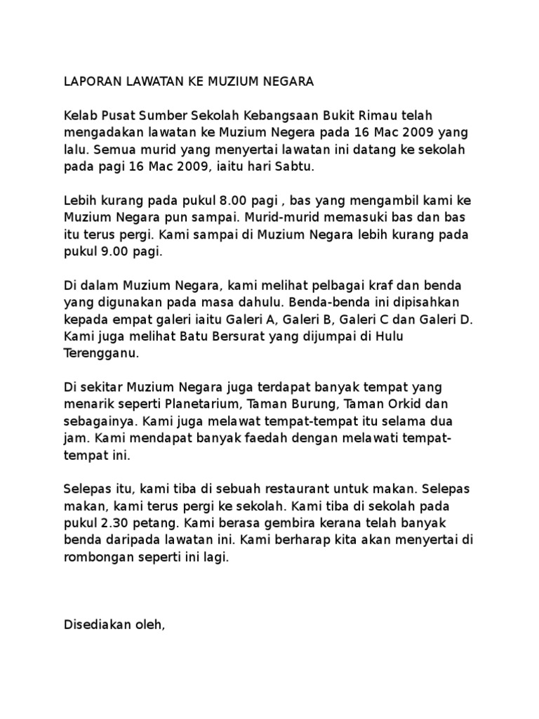 Laporan Lawatan Ke Muzium Negara Pdf